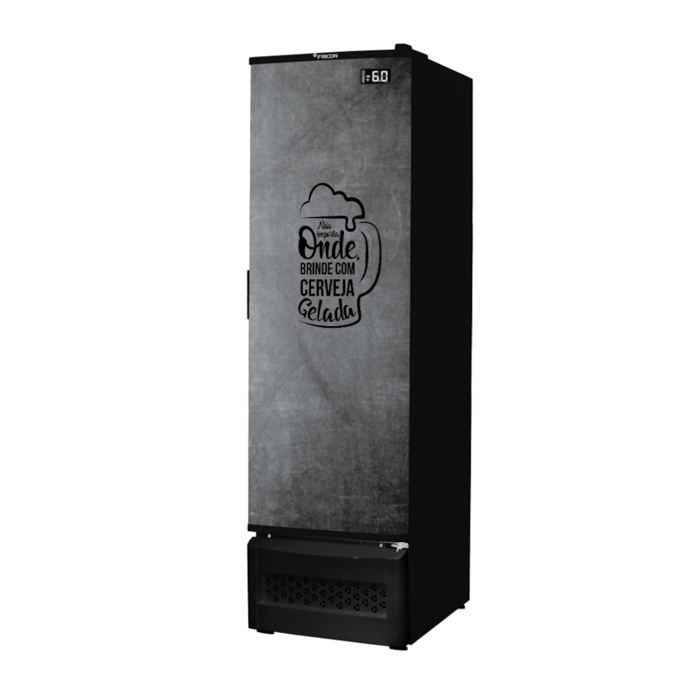 Com design vertical e porta de chapa para melhor isolamento, o equipamento otimiza o espaço, apresentando 179,1 cm de altura, 52,2 cm de largura e 64 cm de profundidade. Com peso de 66 Kg, possui prateleiras ajustáveis, degelo manual e um sistema de unidade condensadora removível que simplifica a manutenção, garantindo alta eficiência energética e durabilidade para seu negócio.