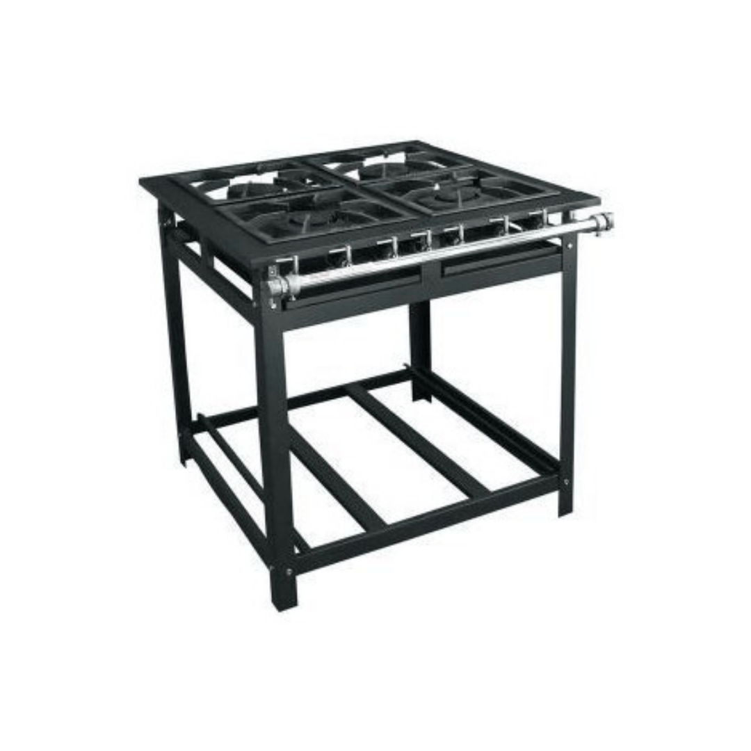 Projetado para restaurantes, lanchonetes e estabelecimentos de médio porte, ele oferece versatilidade na cocção com seus quatro queimadores de ferro fundido 30x30 cm: