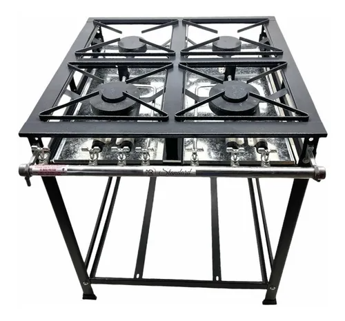 Componentes de Ferro Fundido: Os queimadores (Simples e Duplos) e as grelhas (30x30 cm) são em ferro fundido e aço carbono, projetados para suportar o trabalho intenso e o peso de panelas profissionais.